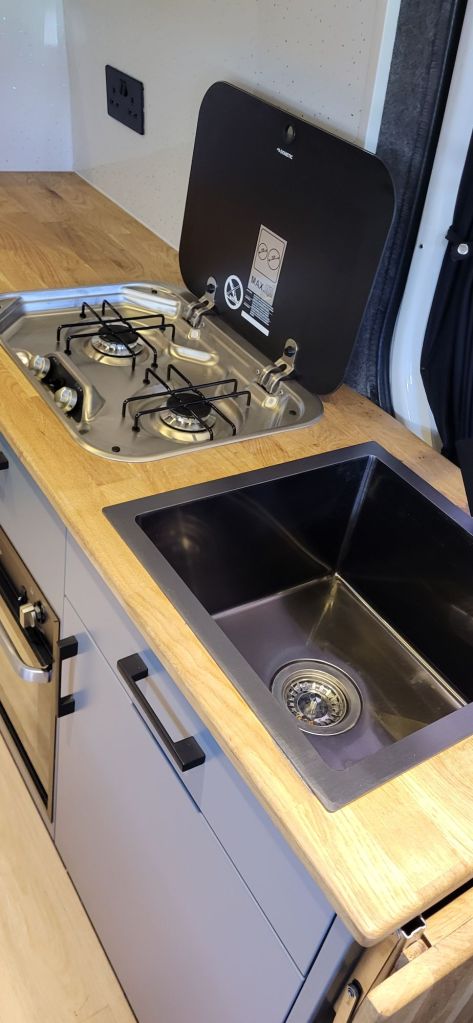 Hob and sink, hot and cold water.